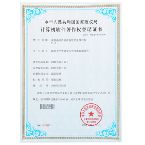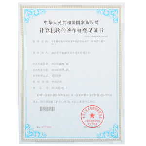 软件产品登记证书中智盛安应急疏散指示系统软件产品