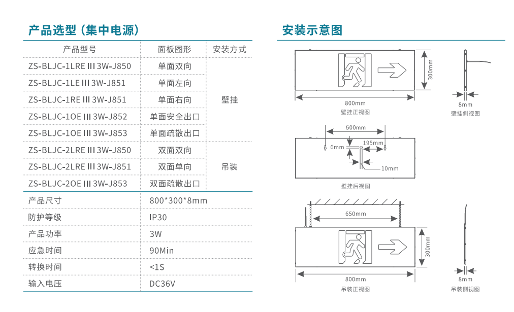 800大型款-单面右向消防应急标志灯 | ZS-BLJC-1RE Ⅲ 3W-J851 | 壁挂