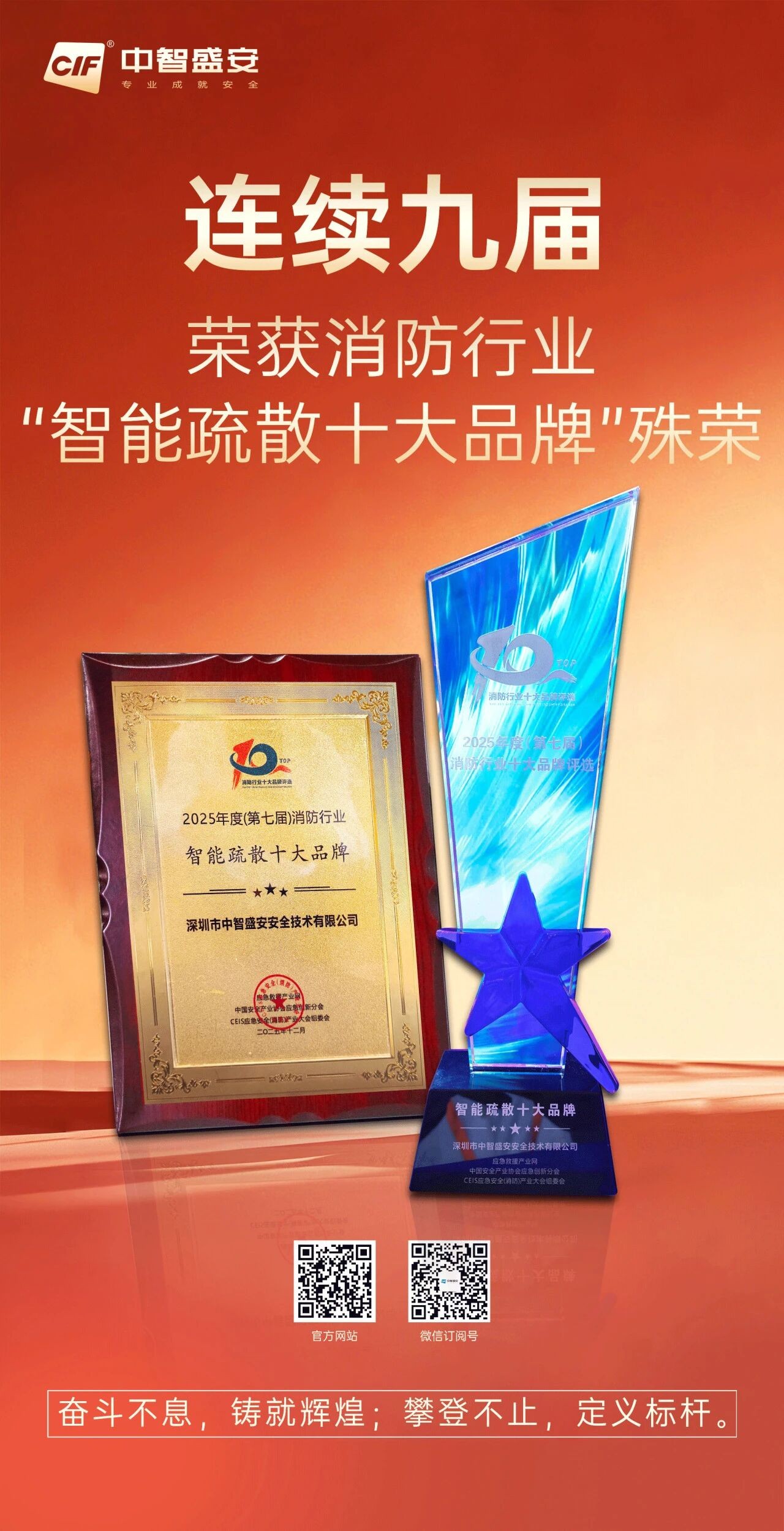 ▲ 中智盛安已连续九届荣获消防行业“智能疏散十大品牌”