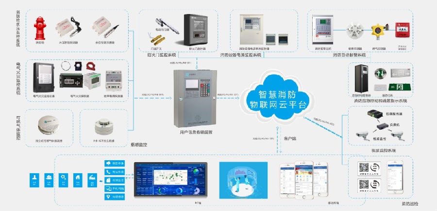 为了更好地实现一站式综合解决方案,智慧消防系统管理平台借助多项子系统共同组合而成,它能够把消防过程中所需要的消防信息全部连接起来,实现更智能高效的消防服务。比如:火灾自动报警系统,它能够实时获取探测器报警数据、设备故障、设备动作状态等数据,便于消防管理部门以及掌握,减少安全隐患。电器火灾监控系统,它能够对用电线路剩余电流、温度、用电电压、用电电流等实时监控,实现综合分析,记录查询等,确保电器火灾防患于未燃。消防用水监控系统,确保消防用水设备正常运行;燃气监控系统能够大幅度提高消防施工效率和智慧化水平等等。